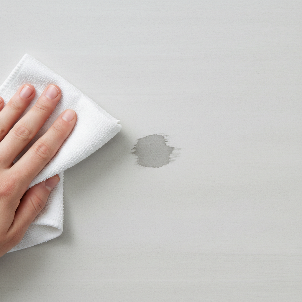 • Abwischen: Wischen Sie die Zahnpasta mit einem feuchten Tuch ab und trocknen Sie die Fliese.