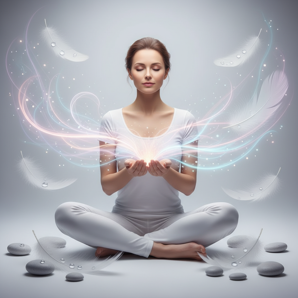 - Visualisierung: Stellen Sie sich vor, wie reines, strahlendes weißes Licht von oben auf Sie herabkommt. Es durchdringt Ihren Scheitel und fließt durch Ihren gesamten Körper.
