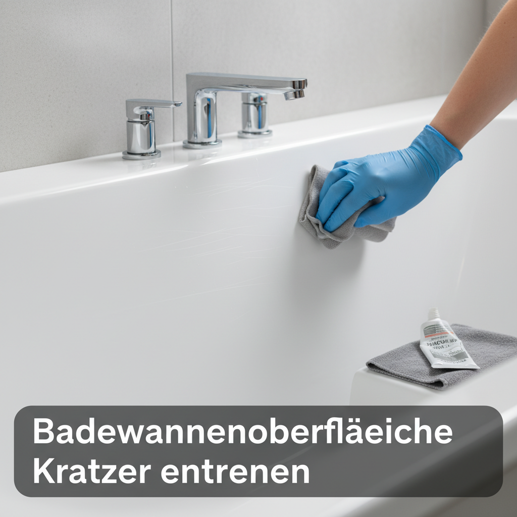 Für Acryl-Badewannen sind spezielle Polierpasten für Kunststoffe oder Acryl die effektivste Methode zur Entfernung von leichten bis mittleren Kratzern. Bei sehr feinen Kratzern kann auch weiße Zahnpasta oder eine Paste aus Backpulver und Wasser helfen. Bei tieferen Kratzern oder Rissen sind Reparatursets für Acryl notwendig, die Füllstoffe und Lacke enthalten.