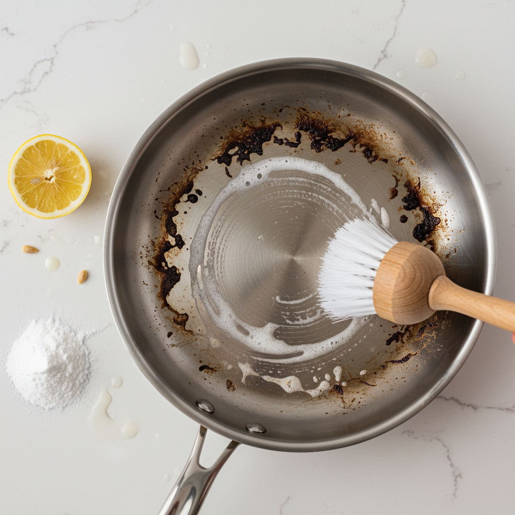 Für Edelstahlpfannen gibt es spezielle Reiniger, die oft auf einer milden Scheuerpaste basieren. Diese Mittel sind darauf ausgelegt, eingebrannte Rückstände zu lösen, ohne die Oberfläche zu zerkratzen.