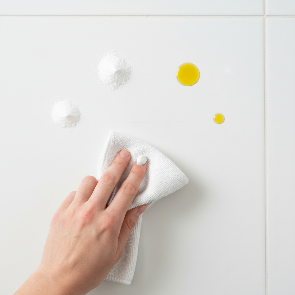 - Geeignete Mittel: Zahnpasta, Backpulver-Paste, Natron, spezielle Fliesenpolituren für glasierte Oberflächen.