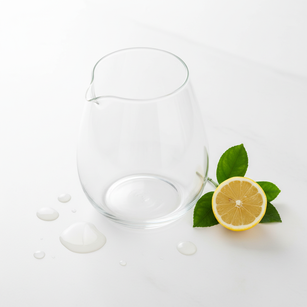 - Kanne nach Gebrauch ausspülen: Spülen Sie die Glaskanne nach jedem Gebrauch mit klarem Wasser aus. Dies verhindert, dass sich Mineralien auf dem Glas ablagern, während das Wasser trocknet.