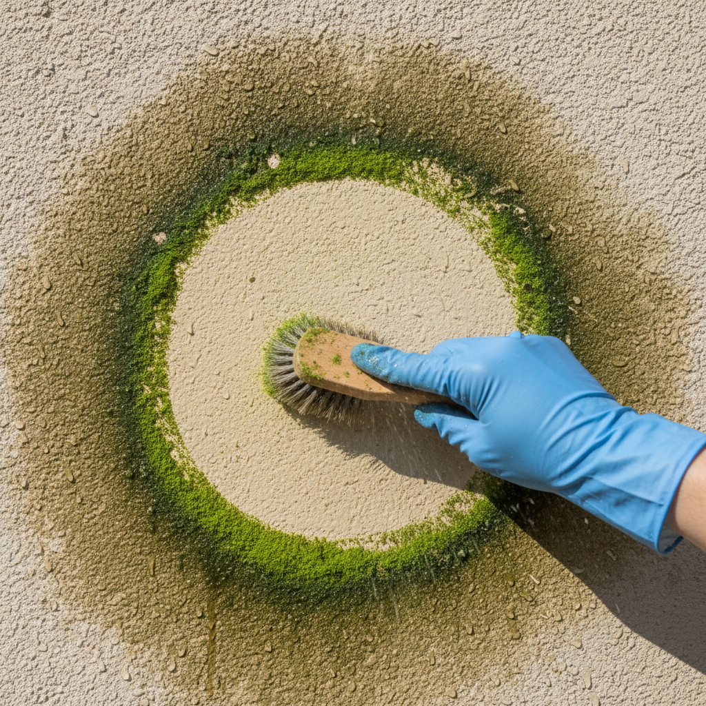 Ist der Grünbelag nur oberflächlich oder dringt er tief in den Putz ein? Ein leichter, oberflächlicher Befall lässt sich oft einfacher entfernen als ein stark verwurzelter.