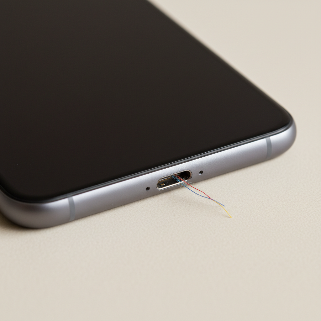 Moderne Smartphones sind kleine Wunderwerke der Technik, doch die Ladebuchse, meist ein USB-C– oder Lightning-Anschluss, ist ein mechanischer Kontakt, der Verschleiß und Verschmutzung ausgesetzt ist. Täglich wird der Anschluss mit Ladekabeln verbunden und getrennt. Dabei können kleinste Partikel wie Staub, Textilfasern aus Hosentaschen oder Handytaschen, aber auch Sandkörner oder sogar Krümel in die Buchse gelangen. Diese Partikel lagern sich ab und bilden mit der Zeit eine Verstopfung.