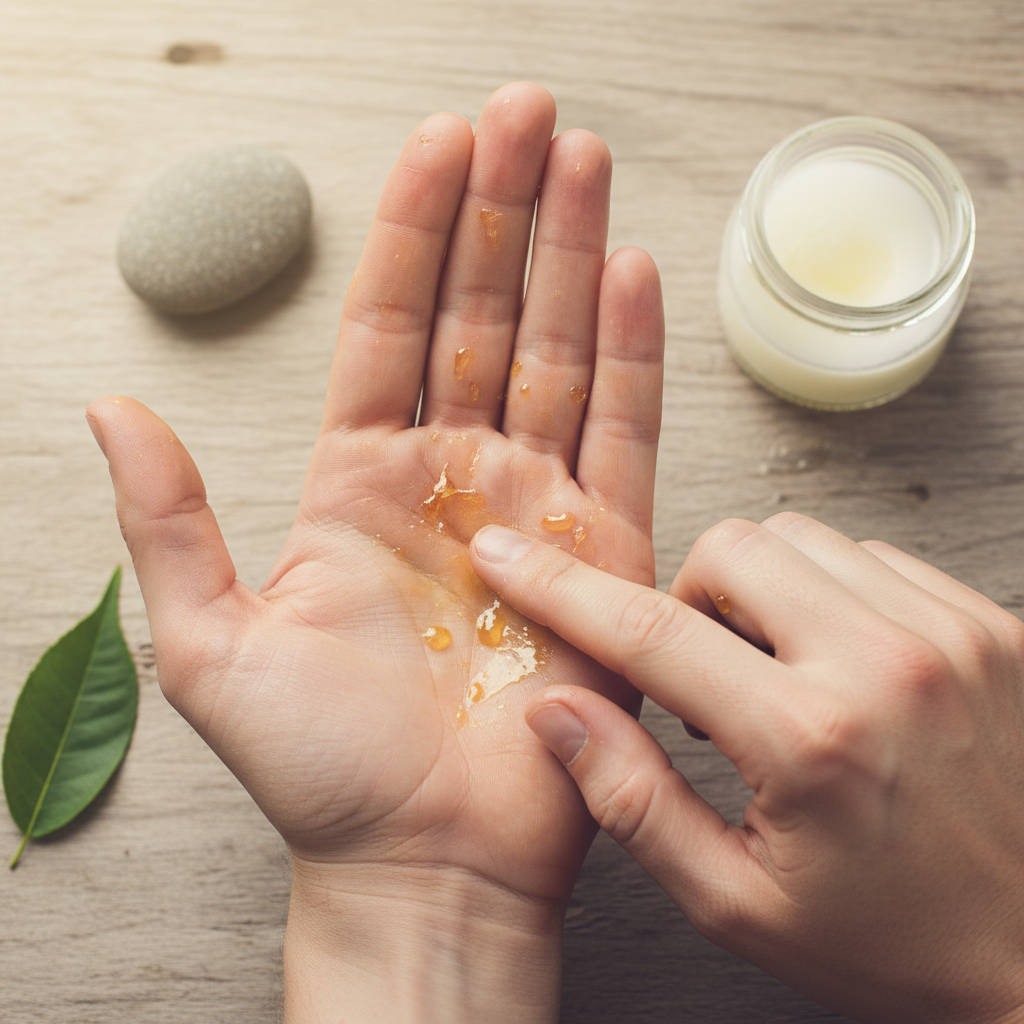 - Alkohol als Lösungsmittel: Reinigungsalkohol oder Handdesinfektionsmittel können Harz schnell auflösen, trocknen aber die Haut aus.