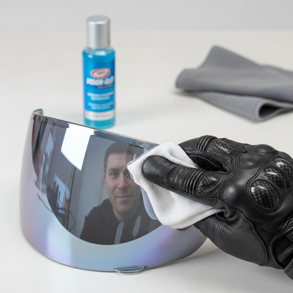 Der beste Weg, um Kratzer auf dem Helmvisier zu vermeiden, ist die richtige Reinigung und Pflege.