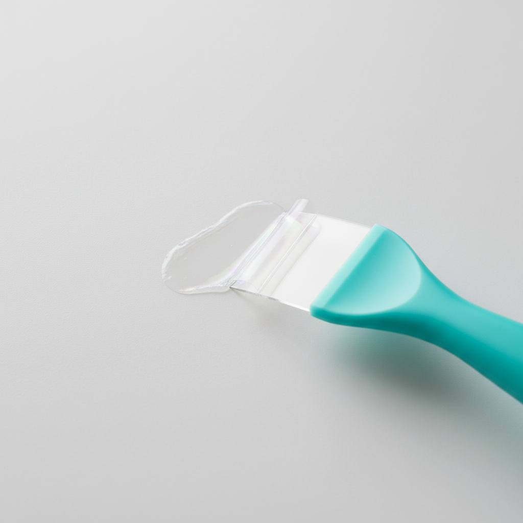 - Grobe Entfernung: Kratzen Sie so viel Kleber wie möglich vorsichtig mit einem Plastikwerkzeug ab.