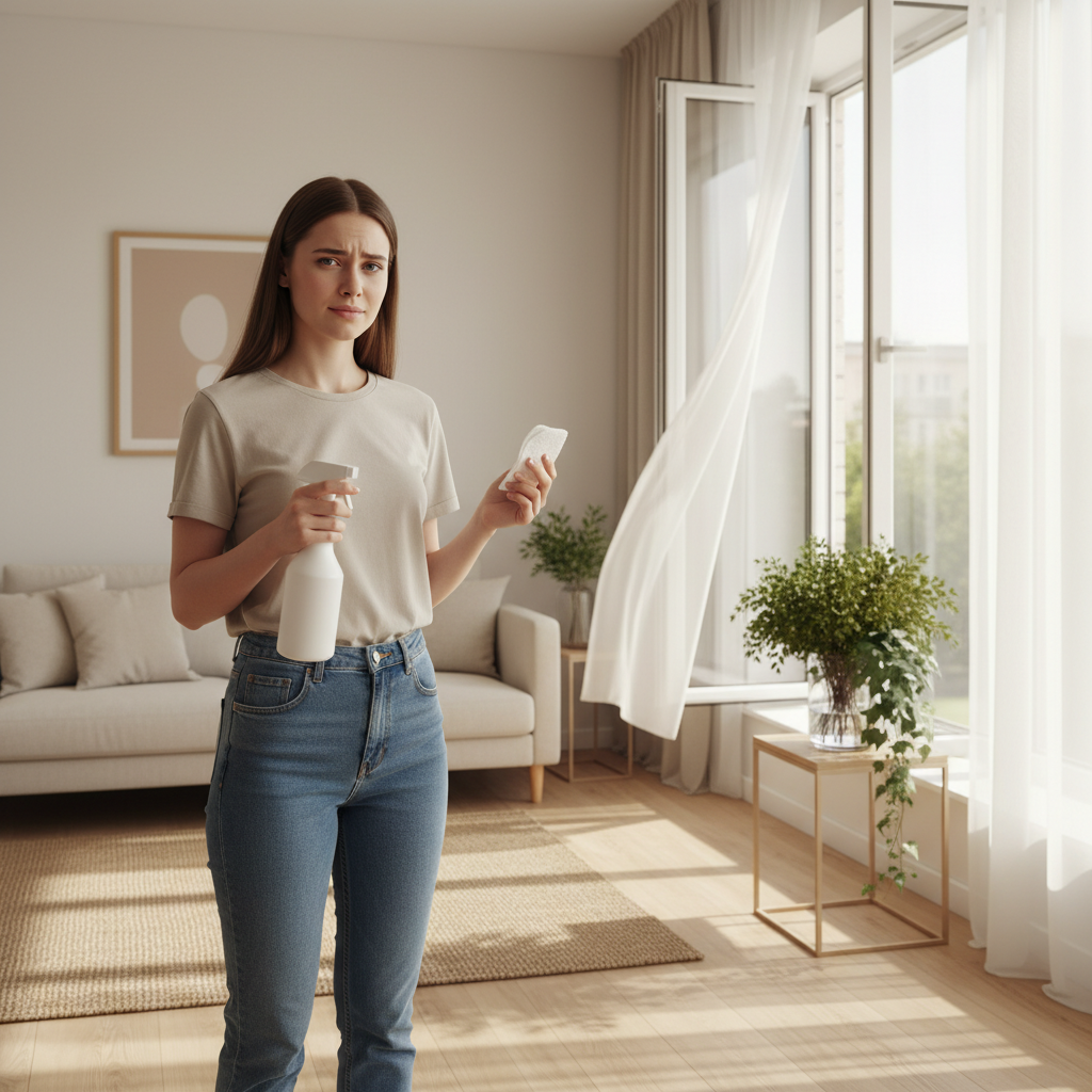 - Fenster und Spiegel: Reinigen Sie Fenster und Spiegel gründlich mit Glasreiniger.
