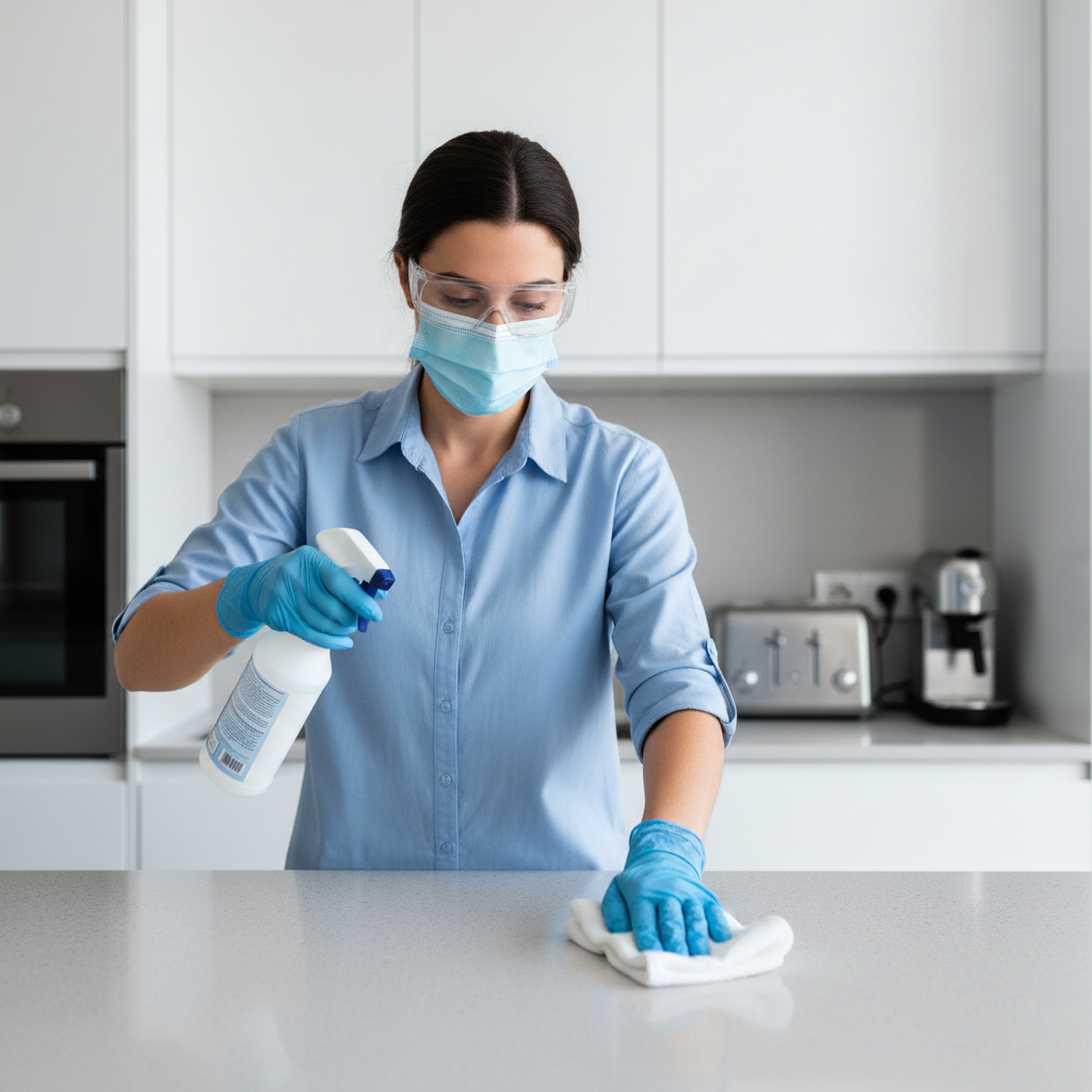 - Arbeitsflächen und Schränke: Reinigen und desinfizieren Sie alle Oberflächen gründlich. Achten Sie besonders auf Ritzen und Spalten.