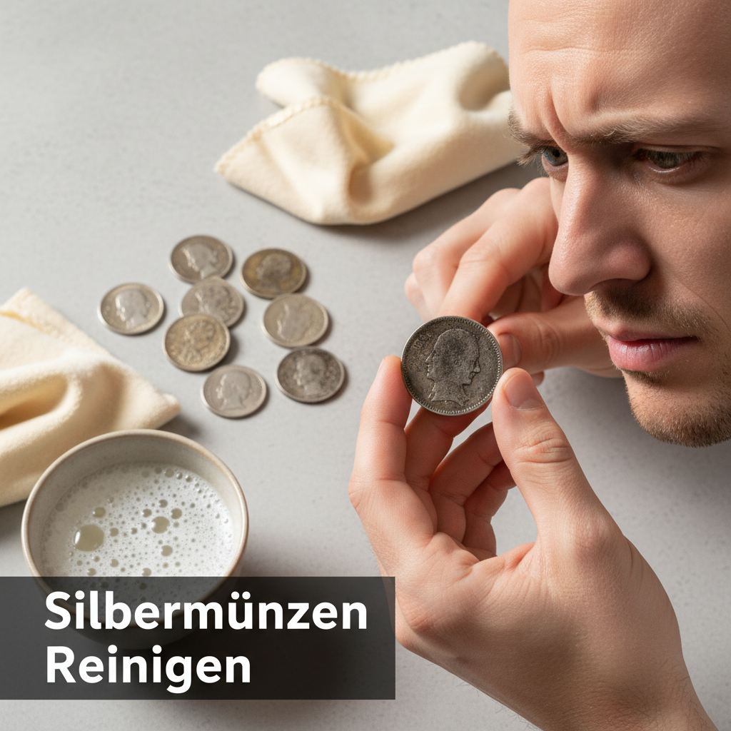 Für Anlage-Münzen sind die sanfte Zahnbürsten-Methode oder die Verwendung von Silberputztüchern oft die sichersten Optionen.