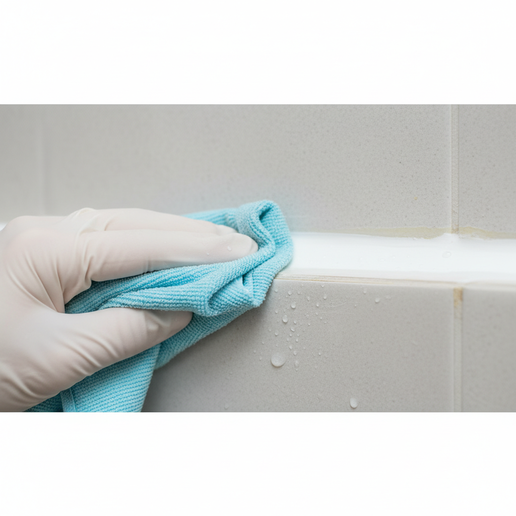 • Trocknen Sie die Fugen sorgfältig mit einem sauberen, trockenen Tuch ab. Feuchtigkeit, die in der Fuge verbleibt, kann das Problem der Vergilbung und Schimmelbildung begünstigen.