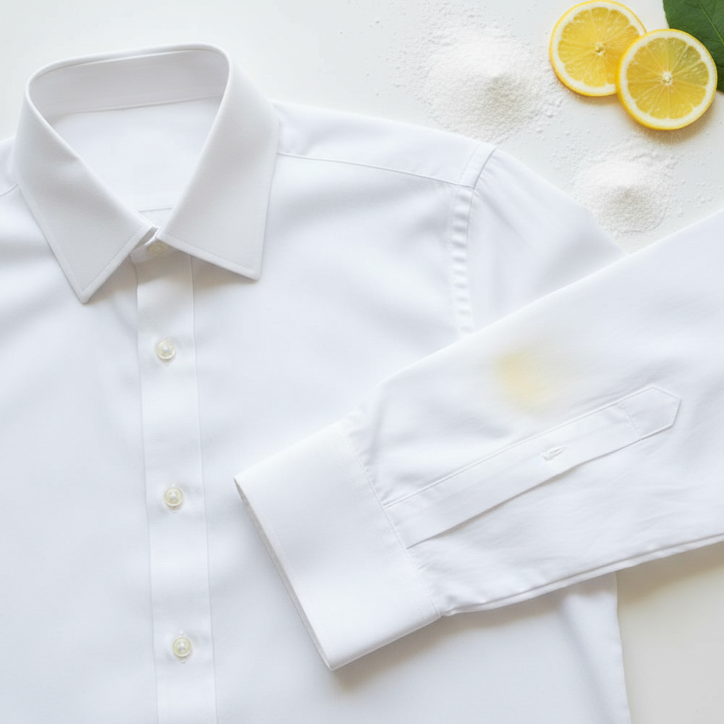 Kragen und Manschetten sind besonders anfällig für Vergilbungen durch Schweiß und Talg.