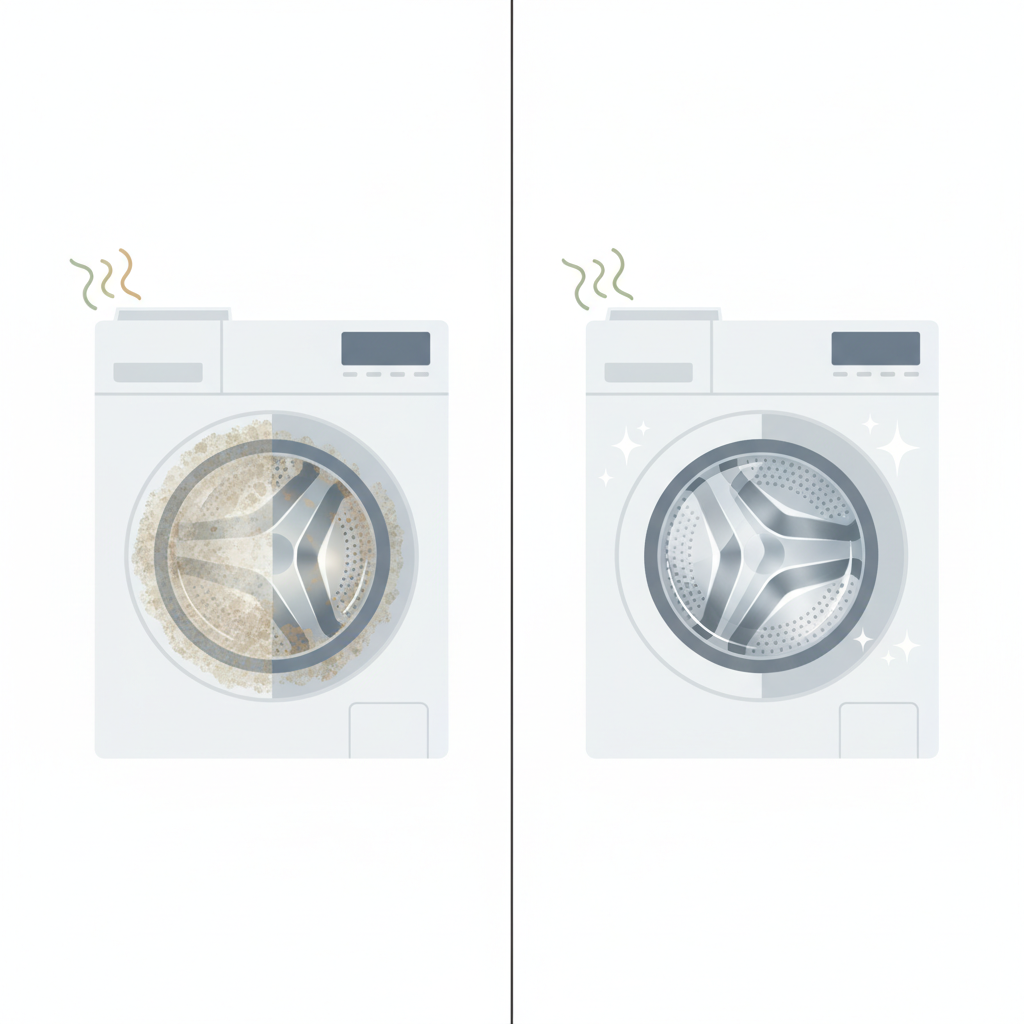 Ihre Waschmaschine leistet harte Arbeit, um Ihre Kleidung sauber zu halten. Doch mit der Zeit sammeln sich in der Maschine Rückstände von Waschmittel, Weichspüler, Kalk, Fusseln und sogar Bakterien an. Diese Ablagerungen können nicht nur unangenehme Gerüche verursachen, sondern auch die Leistung der Maschine beeinträchtigen und auf Dauer zu Schäden führen. Eine regelmäßige und günstige Reinigung beugt diesen Problemen vor.